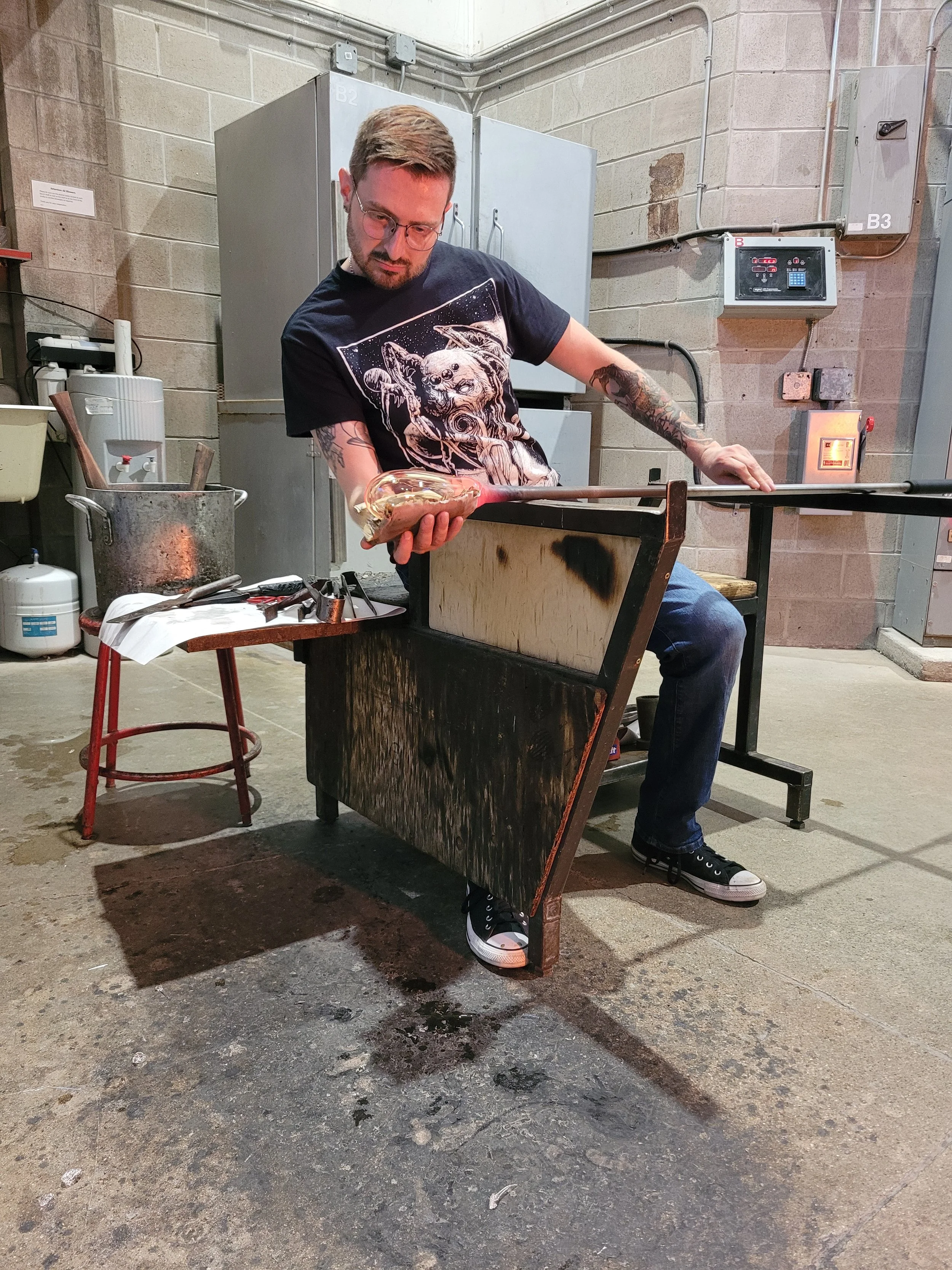 Collin Walsh Blowing Glass. Sept. 2024. Oakville, Ontario.